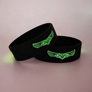 Pulsera de silicona con logotipo personalizado que brilla en la oscuridad Pulsera de silicona de goma Pulsera de silicona grabada